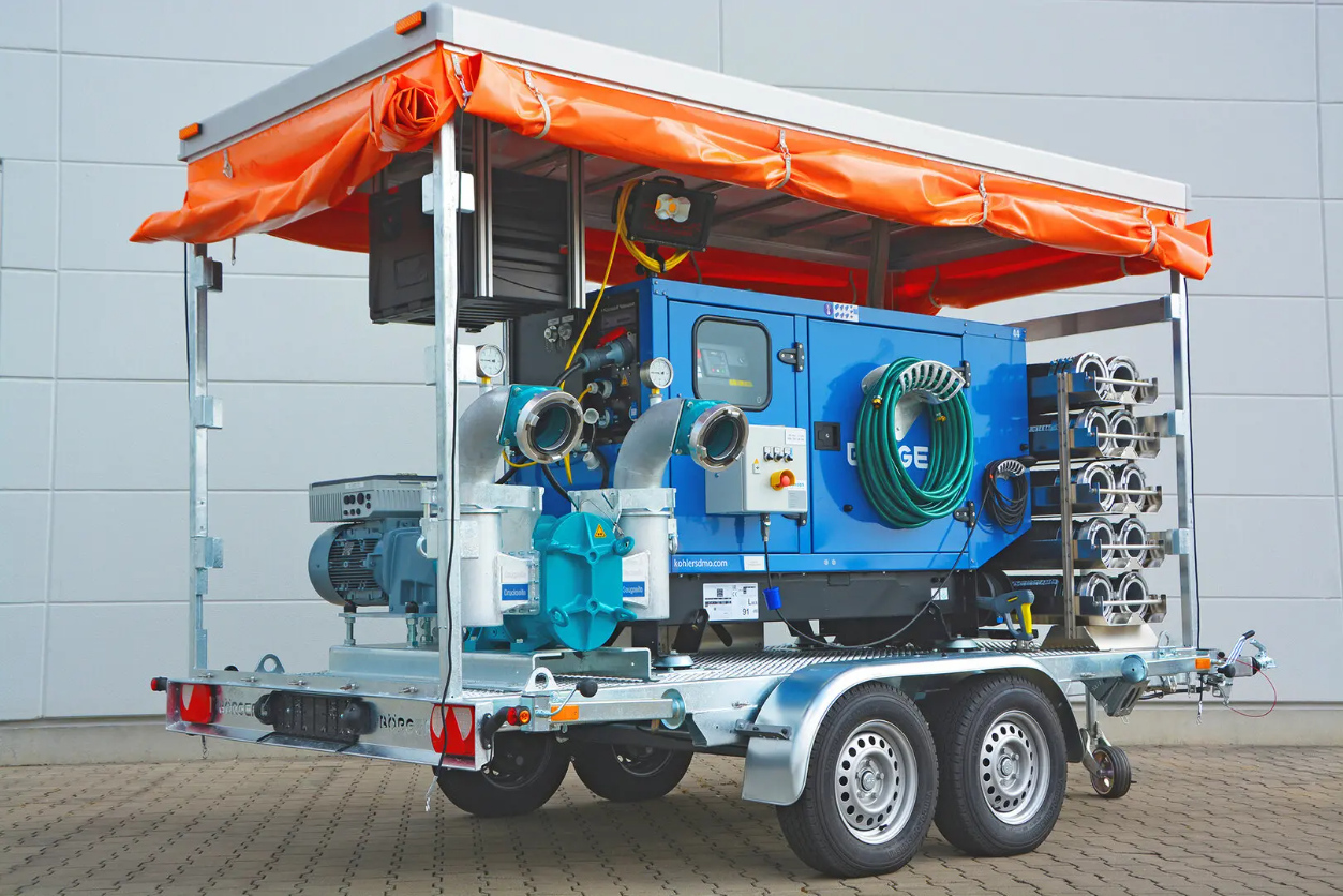 Börger mobile units are used for a wide variety of pumping tasks—mounted on a car or truck trailer, as well as on an L-frame or as a hook lift unit.